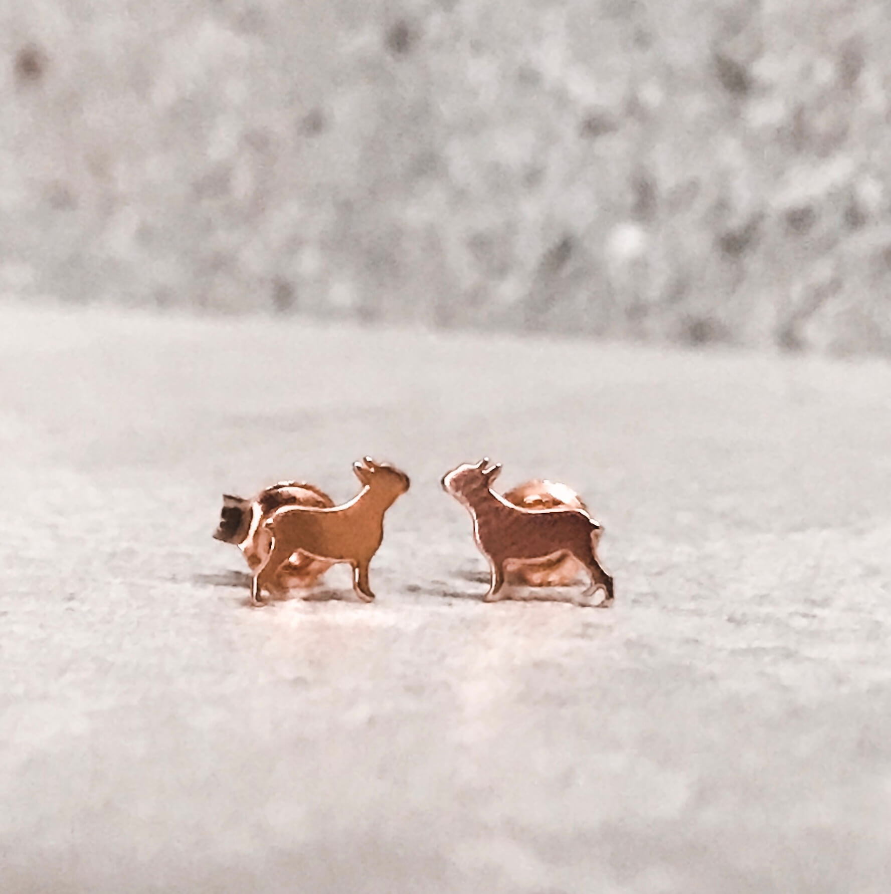 Ohrringe Französische Bulldogge 925er Silber 18K Roségold Legierung